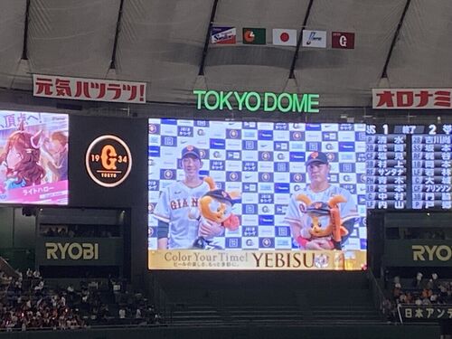 前回は Shake Shack、今回はモスバーガーで腹ごしらえをしてから、東京ドームに向かう。チーズの載った「白いモスバーガー」、ホットスパイス・モスチキン、ティーサングリアという夏らしいメニュー。 muranaga.hatenablog.com ジャイアンツ vs. スワローズ…